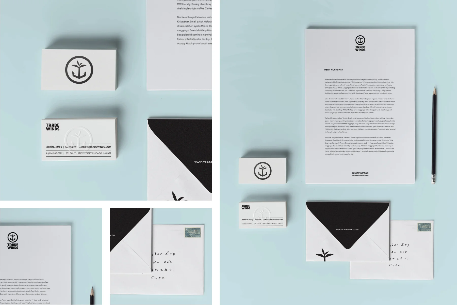 Trade Winds Teas are known for their slow brewing process and family recipes that result in high quality beverages with an island twist. With the redesign I wanted to leverage the iconic and simple style of Caribbean folk art, and infuse the bright colors of the islands. The bright colors are would be expressed on consumer facing goods such as packaging and promotional materials where as corporate materials would maintain a high contrast black and white color scheme. The single color labels represent different flavors while being easly spotted in crowded beverage cases. The single color labels also have the added benefit of inexpensive printing costs, which goes for the single color corporate materials as well.